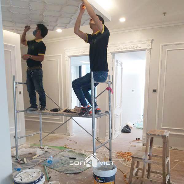 - Thi công sơn bả, đóng trần bằng thạch cao.